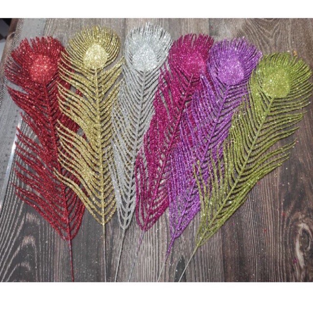 Lông công kim tuyến trang trí oản tài lộc lông công có 3 size : -lông công nhỏ dài 28cm -lông công trung dài 40cm lông công đại đài 50cm