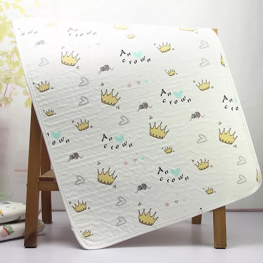 Lưu ý: - Sản phẩm tấm lót chống thấm giúp bé khô thoáng khi không mặc bỉm, không có tác dụng ngăn nước ngấm xuống dưới như ga chống thấm.