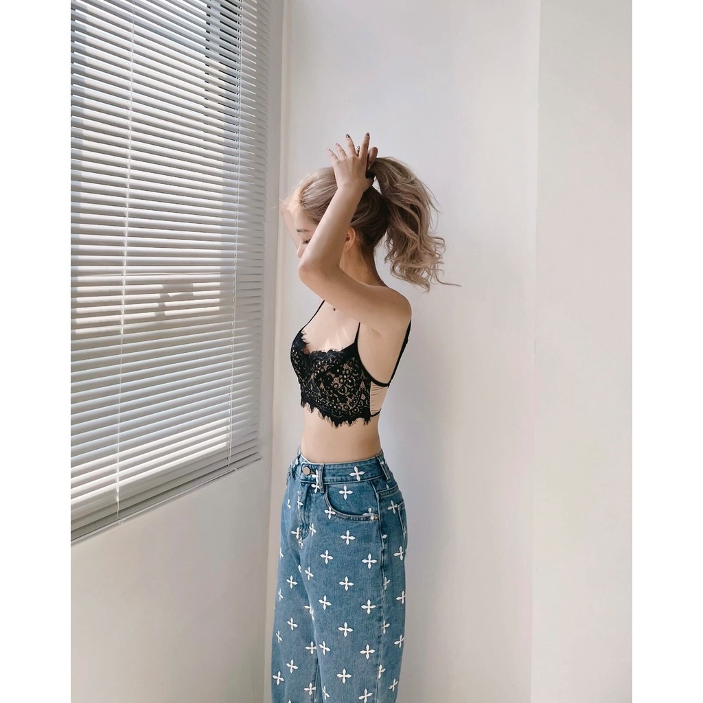 - Chất liệu ren mềm mại, co giãn, ôm ngực