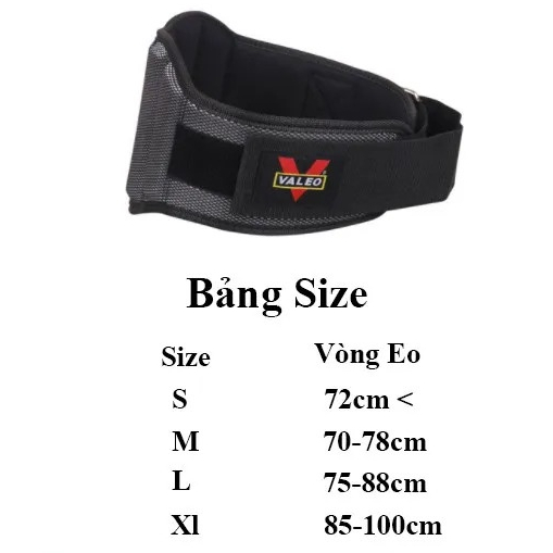 Đai lưng lục giác Valeo, bản lục giác to, rộng ôm lưng: - :Được làm bằng sợi nylon EVA 3 lớp, phía trong đệm lót cực êm, đường chỉ may dày, cực kì chắc chắn và độ bền cao - Đai được sử dụng 2 đường may vô cùng chắc chắn. - Khóa chắc chắn, an toàn, chiều dài khóa lớn. - Đai có bề rộng lên tới 19,5cm giúp bảo vệ lưng bạn tối đa nhất Cách chọn size: - Size S: thích hợp cho eo 60-70cm - Size M: thích hợp cho eo 70-76cm - Size L: thích hợp cho eo 76-86cm - Size XL : thích hợp cho eo 90 cm trở lên - Thích hợp sử dụng cho tất cả các bài tập (Squats, gánh tạ). - Bảo vệ lưng, giúp chống đau lưng mỏi cơ khi tập luyện.