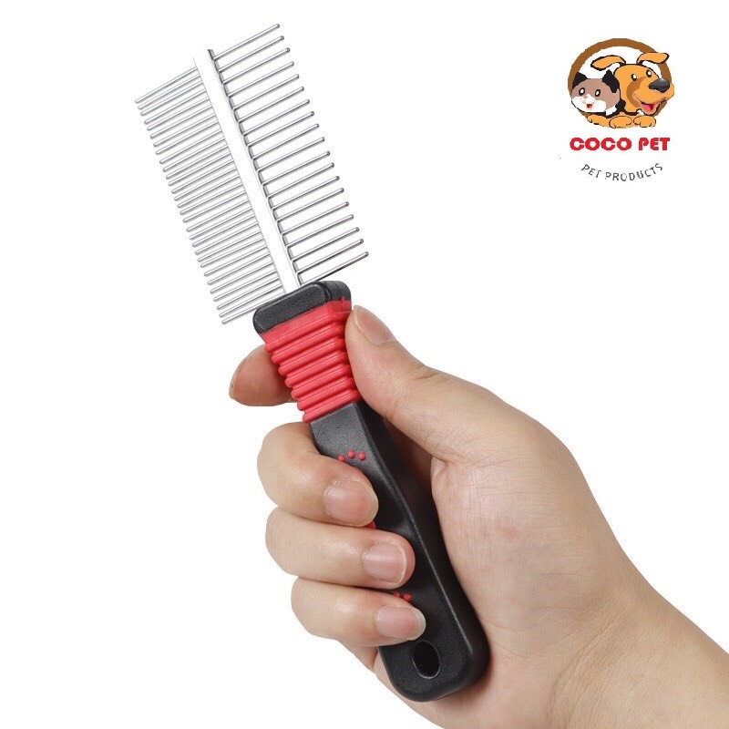 Giới thiệu Lược Chải Lông Inox 2 Đầu Cho Chó Mèo Lông Dài Có Tay Cầm Siêu Tiện Dụng