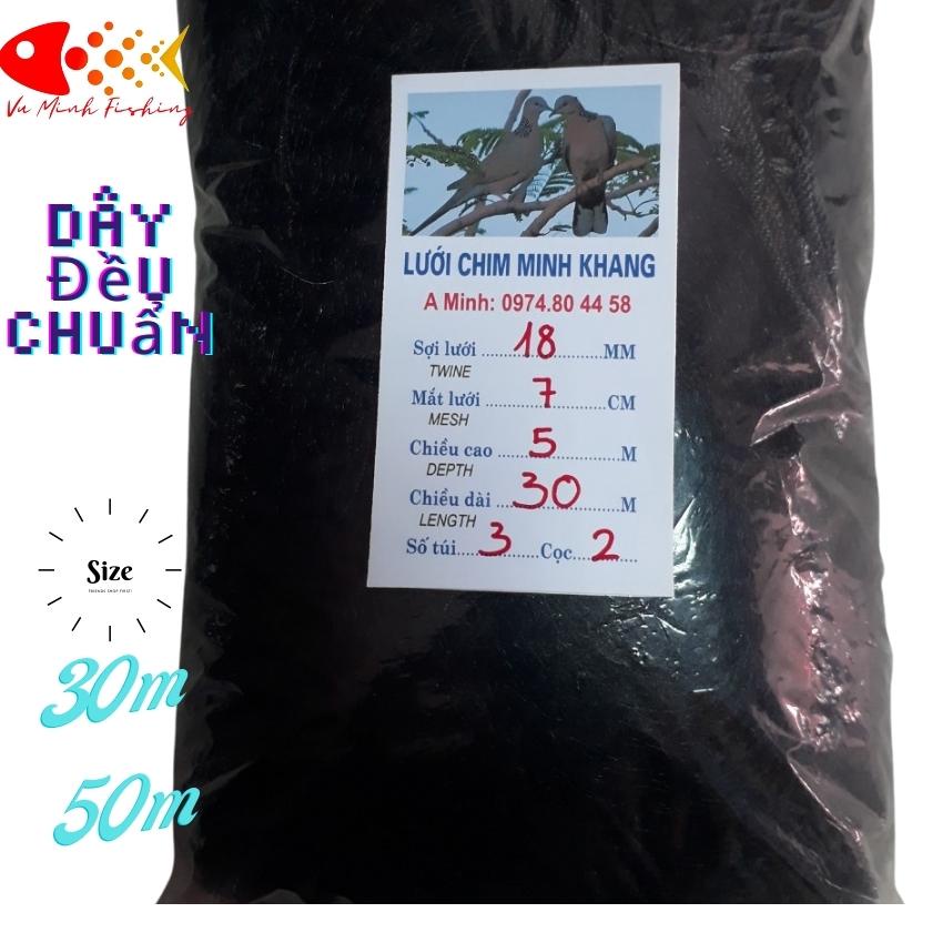 ** Lưới bẫy chim cu gáy dài 30m mắt 7 cao 5m Sản phẩm được thắt chống gió 1 đầu. Với khoảng cách trung bình 50cm/ khoảng. Thắt chống gió bằng sợi dù.