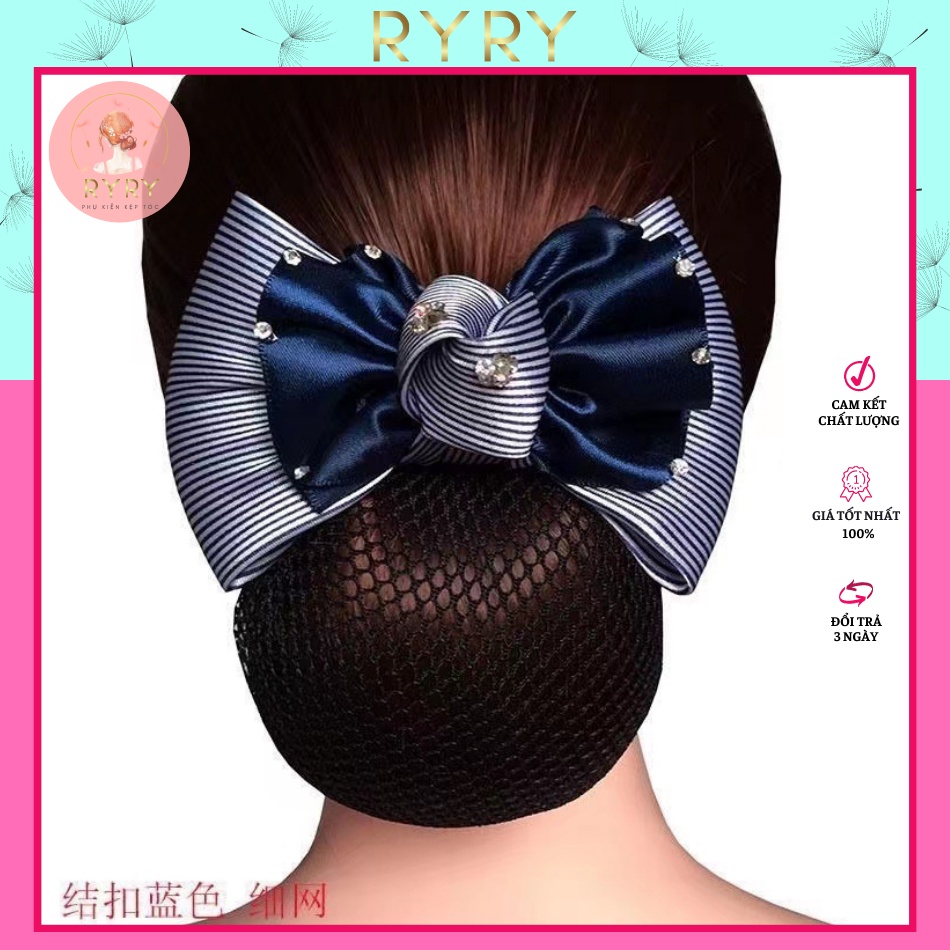 Giới thiệu Lưới búi tóc trẻ trung hoạ tiết nơ bản to sang trọng màu sắc thanh lịch 11.5cm