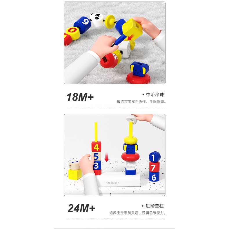 Giới thiệu Đồ chơi luồn hạt, xâu vòng, xếp tháp 3 trong 1 rèn luyện trí não, sự khéo léo của bé hãng Topbright