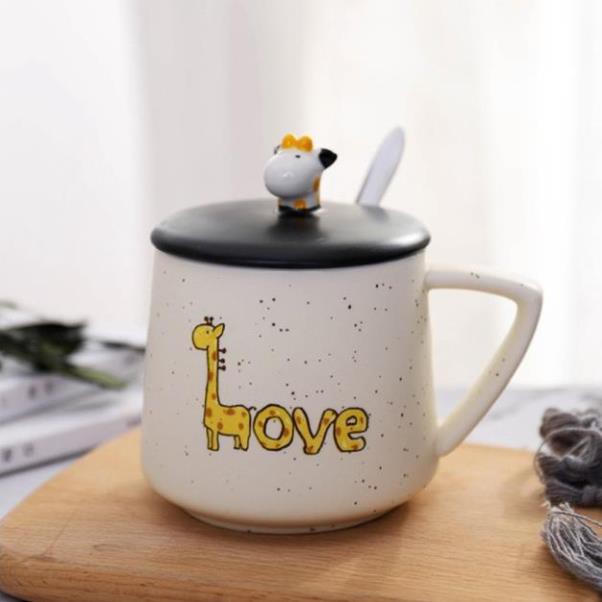 Giới thiệu Ly Cốc Sứ Hươu Cao Cổ 401-500ML Xinh Xắn - Ly Có Nắp Và Thìa Inox
