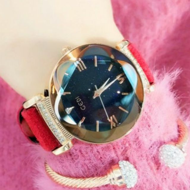 Giới thiệu (Thanh lý) Đồng Hồ Nữ GEDI Dây Da Lộn Mặt Vát Hoa Mai Chính Hãng
