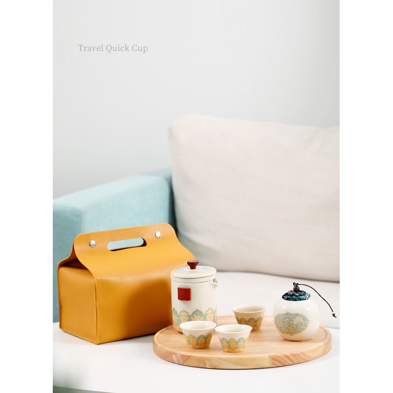 Bộ ấm chén pha trà bằng sứ (Có kèm túi du lịch chống va đập)
