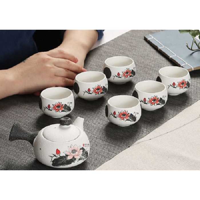 + Bộ ấm trà sứ được làm chất liệu gốm sứ cao cấp, bền bỉ, do vậy sản phẩm khó bị nứt vỡ, chống trầy xước hiệu quả, cho sản phẩm bền bỉ theo thời gian. + Bộ ấm trà sứ có kiểu dáng trang nhã, tiện dụng. + Bộ ấm trà sứ được thiết kế trang nhã với hình ảnh tinh tế, cho bàn tiếp khách của bạn thêm trang trọng. + Lớp men bảo vệ không có chứa chất độc hại, an toàn cho người dùng Bộ ấm trà sứ có lớp men bảo vệ sáng bóng, giúp dễ dàng chùi rửa, vệ sinh sau khi dùng. + Hơn nữa, sản phẩm không chứa chì, không Cadmium, bảo đảm an toàn sức khỏe cho người dùng. Sản phẩm Bộ ấm trà sứ được làm hoàn toàn thủ công bởi bàn tay của những người nghệ nhân yêu nghề, luôn đem trọn tâm huyết của mình thổi hồn vào từng sản phẩm. + Từng đường nét hoa văn trên ấm cũng được vẽ bằng tay, do đó các sản phẩm làm ra sẽ có 1 chút khác biệt nho nhỏ. + Cấu tạo: Trong lòng ấm: tráng men mỏng, đảm bảo độ thẩm thấu cao, lưu giữ hương thơm của trà. Phần lưới lọc có các lỗ được khoét đều nhau, không có đất thừa bám quanh lỗ trên lưới. + Quai ấm: quai kiểu Nhật, phần tay cầm chuẩn xác, giữ được thăng bằng. + Nắp ấm: Vừa khít miệng ấm. Trên nắp có một lỗ nhỏ được khoét giúp cho không khí có thể vào trong ấm, cân bằng áp suất không khí trong và ngoài ấm, tránh tình trạng vòi ấm bị nhỏ giọt và dễ dàng rót nước trà ra. - Hướng dẫn sử dụng: Trước khi pha trà, tráng ấm bằng nước nóng để đánh thức hương thơm của trà. Hướng dẫn bảo quản: Rửa lại bằng nước sạch sau khi sử dụng (Lưu ý không rửa bằng xà phòng, vì chất liệu gốm sứ có tính thẩm thấu cao).