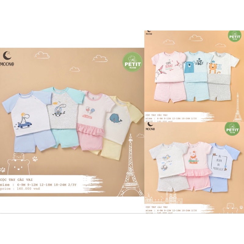 Giới thiệu M2004 Bộ cộc tay cài vai petit Moon phối kẻ (9-36M)