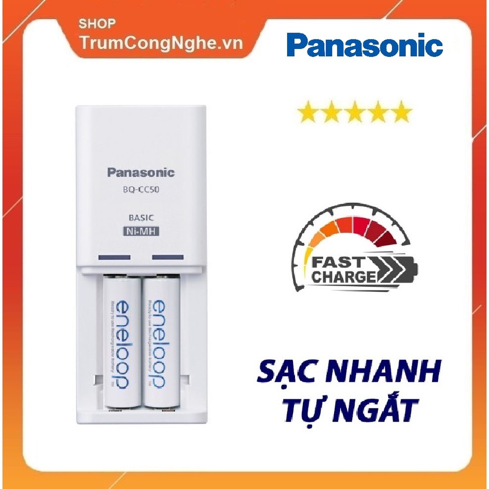 Máy Ảnh & Máy Quay Phim > Phụ kiện máy ảnh > Pin - Sạc máy ảnh > [Mã 99ELHA giảm 7% đơn 300K] Bộ Sạc Kèm 2 pin AA Eneloop 1900mah BQ-CC50T (BQ-CC50AS) Chân Gập Tự Ngắt Sạc (trắng)