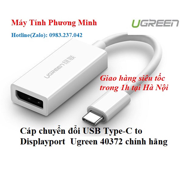 - Cáp chuyển đổi USB Type-C to Displayport Ugreen 40372 này cho phép bạn chuyển đổi từ máy tính Macbook có cổng USB-C sang màn hình LCD chuyên đồ họa, Tivi, máy chiếu... có cổng displayport.