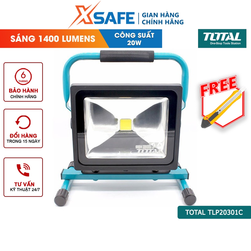 Thông số kỹ thuật - Mã sản phẩm: TLP20301C - Thương hiệu: Total - Xuất xứ: Trung Quốc - Điện áp: DC 12V - Công suất: 20W - Lượng ánh sáng: 1400 lumens, nhôm đúc ở phần chiếu sáng - Thời gian sạc: 4 ~ 5H - Thời gian chiếu sáng: 2.5H - Pin Lithium 7.4V / 2200mAH - Nhiệt độ màu (K): 6400 - Tiêu chuẩn kháng nước/bụi: IP44 - Đóng gói bằng hộp màu - Kèm theo 1 cái sạc chuyển đổi và 1 dây sạc trong xe hơi - Bảo hành: 6 tháng -QUÀ TẶNG: DAO RỌC GIẤY