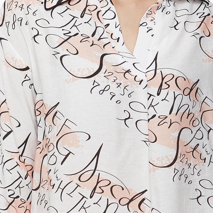 Giới thiệu N&M Áo Sơ Mi Nữ dài tay cổ chữ V màu trắng có họa tiết 1908034