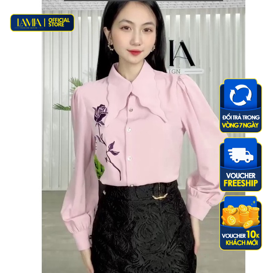 Your browser does not support the video tag.Video giới thiệu sản phẩm [Mã BMLT30 giảm đến 30K đơn 299K] Áo sơ mi nữ hè Lamia Design SM342 màu hồng thêu hoa. Nguồn: Shopee.