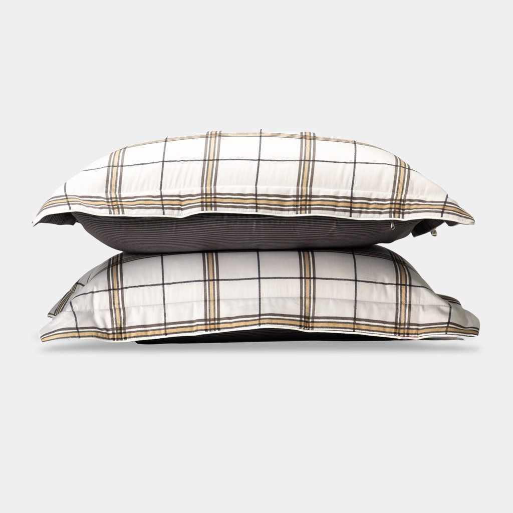 Hoạ tiết caro nâu trên nền vải trắng tạo nên phong cách tối giản ưa nhìn và lôi cuốn cho sản phẩm