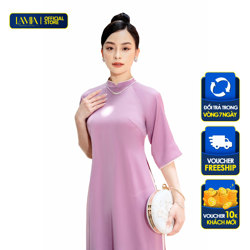 Giới thiệu Áo dài truyền thống Lamia Design AD079 lụa Hàng Châu màu tím Huế thủy chung