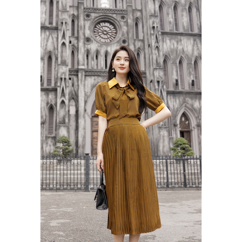 Giới thiệu Set sơ mi nữ hè Lamia Design SET004 kẻ nâu đen phối nơ