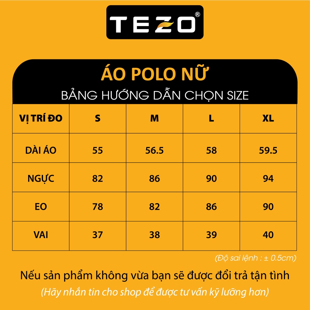 Áo polo nữ màu MELANGE Tezo năng động trẻ trung 2203APCT20 Thông tin sản phẩm Chất liệu: 92% Coolmax 8% Spandex Màu sắc: 5 màu ( XTI , GHX , GHS , XDU , XAT ) Kiểu dáng: Lịch lãm , sang trọng Size: 38/S, 39/M, 40/L, 41/XL Nơi sản xuất: Việt Nam Đặc điểm nổi bật: Sợi Melange là một loại sợi thân thiện với môi trường , kết cấu sợi mịn , bền chắc , không bị bùng và xù bề mặt vải . Bề mặt vải trơn nhẵn , mịn màng tạo cảm giác thoải mái khi tiếp xúc với da . Chất liệu Coolmax có ưu điểm mềm mại , chất vải nhẹ , khả năng thấm hút mồ hôi tốt không nhăn và phai màu , ít bám bẩn , dễ làm sạch và độ bền cao . Đường chỉ may chắc chắn , co giãn 4 chiều vượt trội. Form dáng áo cơ bản với cổ bẻ lịch lãm , sang trọng , không lộ khuyết điểm và mang lại trải nghiệm thoải mái trong mọi hoạt động . Ngực trái thêu “Simple Tezo” tỉ mỉ , tinh tế , sắc nét khảng định thương hiệu Thời Trang TEZO. Gợi ý phối đồ - Với chiếc áo polo form ôm vừa phải , tinh tế này bạn có thể phối cũng quần âu , quần jean , quần short ngắn hoặc chân váy ngắn mang lại sự thoải mái , khỏe khoắn và trẻ trung hơn. - Màu sắc tinh tế , dễ mix đồ , bạn có thể diện trang phục thoải mái và trẻ trung này đi chơi , đi dạo phố , đi làm , đi học , … là 1 sự lựa chọn hoàn hảo. 4. Cách bảo quản: Lộn trái sản phẩm khi giặt, không giặt chung sản phẩm trắng với quần áo tối màu. Không phơi trực tiếp dưới ánh nắng mặt trời. Giặt máy ở chế độ nhẹ, nhiệt độ thường. Không sử dụng hóa chất tẩy có chứa Clo, không ngâm sản phẩm. Sấy khô ở nhiệt độ thấp. Là ở nhiệt độ thấp 110 độ. Giặt với sản phẩm cùng màu. Sản Phẩm đậm màu khuyến cáo nên giặt nước trắng 2 -3 lần đầu Lưu ý mua hàng: - Bảng size mang sản phẩm mang tính chất tham khảo, tùy thuộc số đo cơ thể và chất liệu từng sản phẩm sẽ có sự chênh lệch nhất định. Vui lòng chat với shop để được nhân viên tư vấn cụ thể. - Quý khách nên quay lại video trước khi mở sản phẩm để có những sự cố được TEZO xử lý nhanh chóng nhất. - Vui lòng đánh giá 5* giúp TEZO để được nhận quà từ TEZO nhé! #aothunucoco #aothunnu #aophongnucoco #aopolonu #aothunnu, #polotron, #tezo #aonucoco, #aocoduc #aonucachdieu #aophongnusdep #aongantay #tshirt #polo #ao #phong #thun