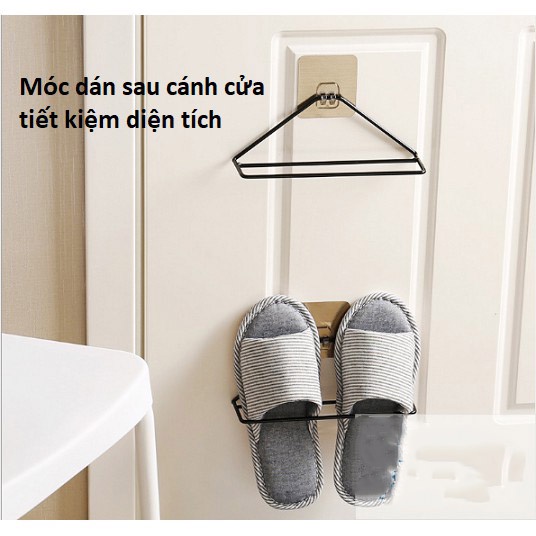 1./ THÔNG TIN SẢN PHẨM - Giá để dép treo tường gọn nhẹ, giúp tiết kiệm không gian, lại giúp dép được ráo nước nếu là dép nhà tắm - Mặt sau tấm dán cường lực là keo chuyên dụng rất chắc chắn, có thể dán lên các bề mặt bằng phẳng như tủ gỗ, tường gạch men, sau cửa. - Có thể treo được nhiều loại dép khác nhau. - Chất liệu sắt sơn tĩnh điện màu đen bền đẹp . - Kích thước giá treo dép : 23 x 6 x 8.5cm . - Bộ sản phẩm bao gồm: kệ treo và miếng dán