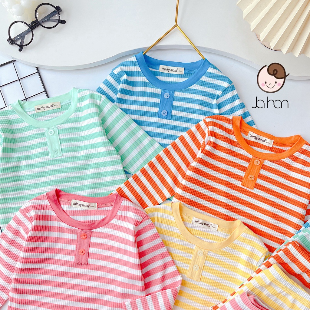 Giới thiệu Bộ quần áo trẻ em dài tay Minky Mom Len Sọc cao cấp cho bé, chất thun lạnh mềm mịn thoáng mát size 6-19kg