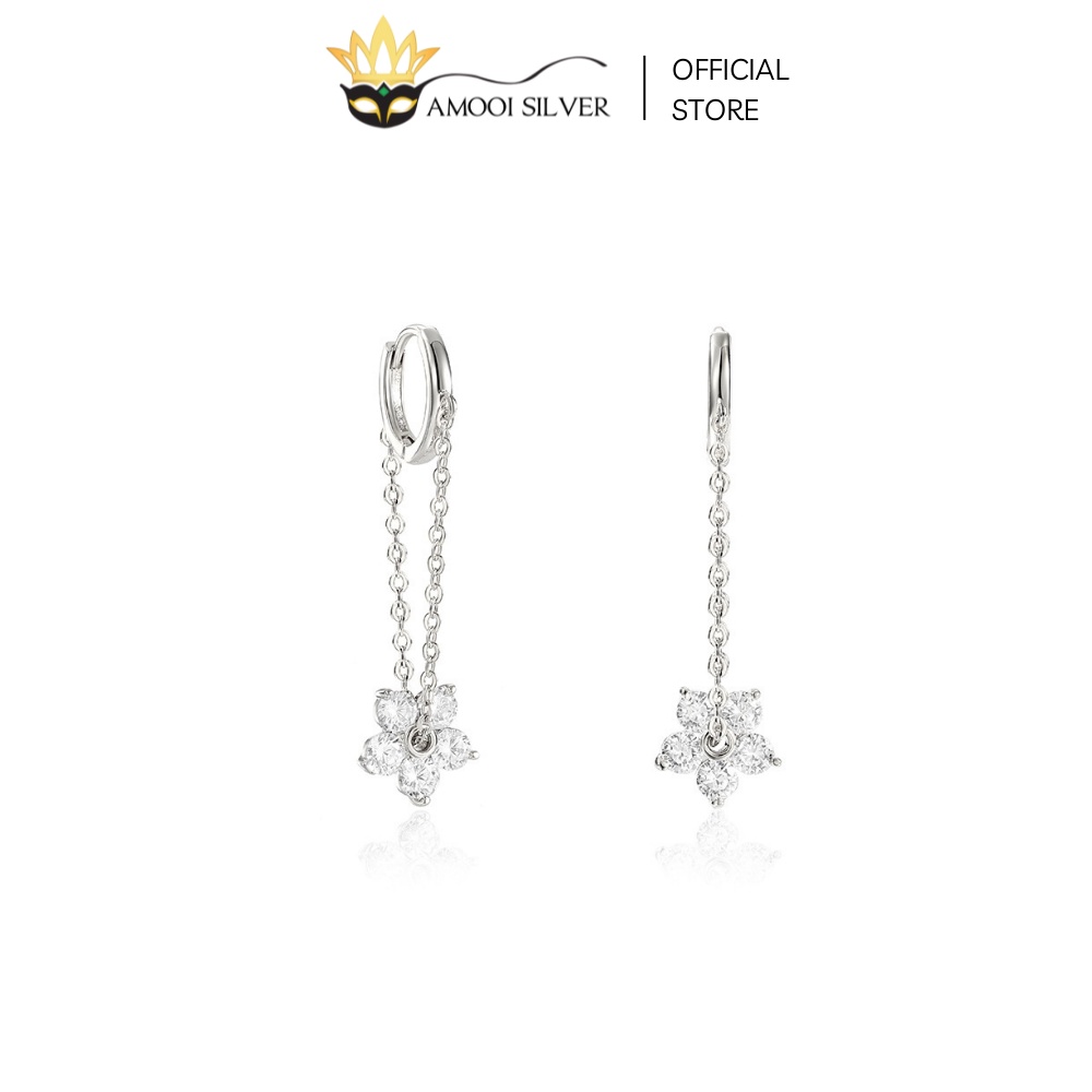 Giới thiệu Bông tai bạc S925 khoen tròn hoa 5 cánh tua rua đường kính 8mm - Amooi Silver AB217