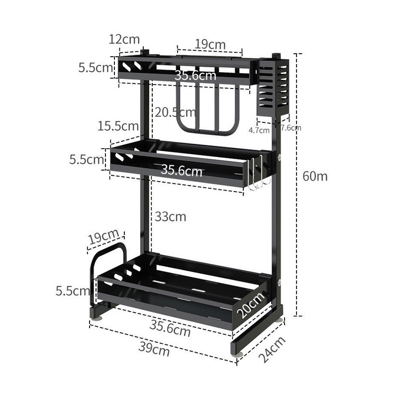 _ Tên sản phẩm: Kệ gia vị đa năng inox 3 tầng Phú Khang _ Chất liệu: Hợp kim thép sơn nano siêu dày giúp chống gỉ sét _ Kích thước: 33x20x60cm DxRxC _ Màu sắc: Đen _ Thiết kế: 3 tầng