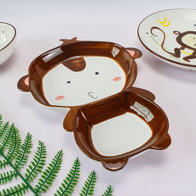 Giới thiệu Đĩa Ăn Dặm Gốm Sứ Tráng Men Size To Hình Chú Khỉ Ngộ Nghĩnh Giúp Bé Ăn Ngon YOOTA BABY