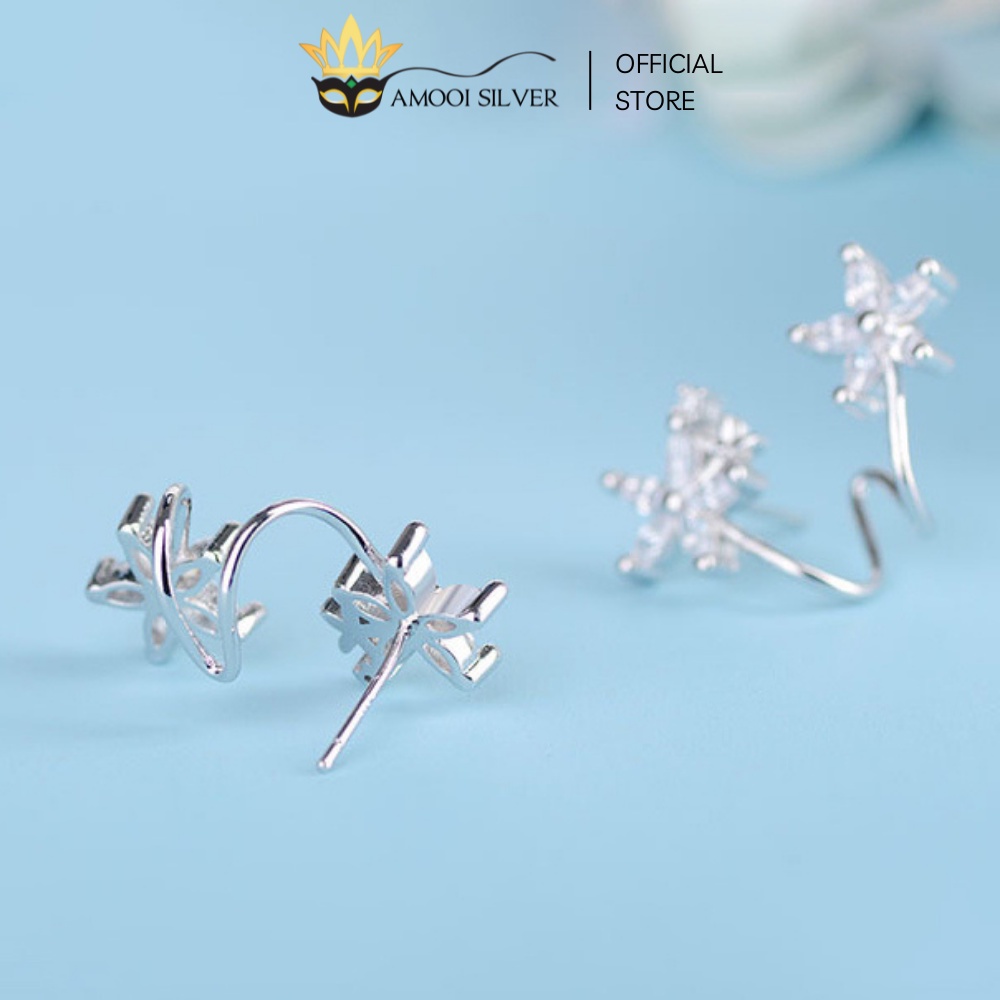 ✅ THÔNG TIN SẢN PHẨM: Bông Tai Bạc S925 Mẫu Đôi Hoa 5 Cánh Đính Đá Xinh Xắn - Amooi Silver AB104