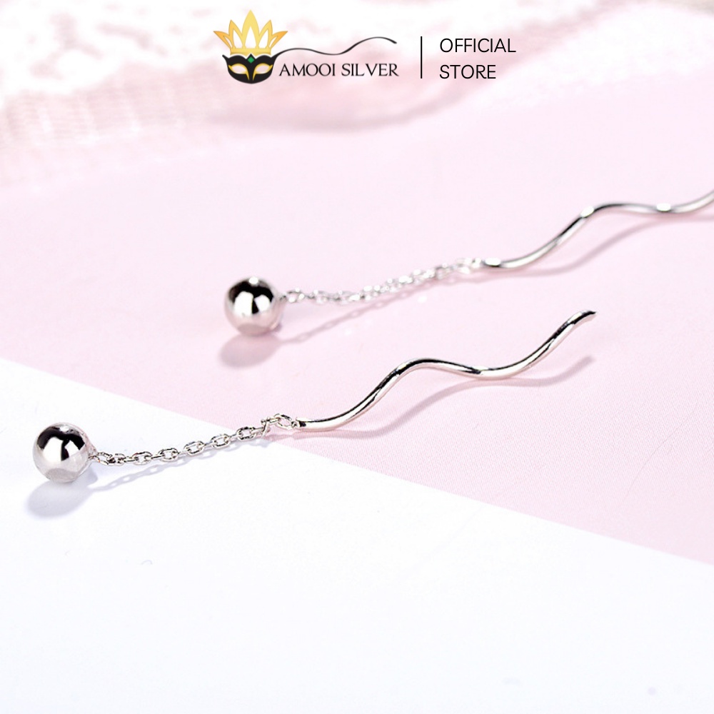 ✅ THÔNG TIN SẢN PHẨM: Bông Tai Bạc S925 Mẫu Bi Xoắn Dáng Tua Dài Xỏ Qua Tai - Amooi Silver AB14