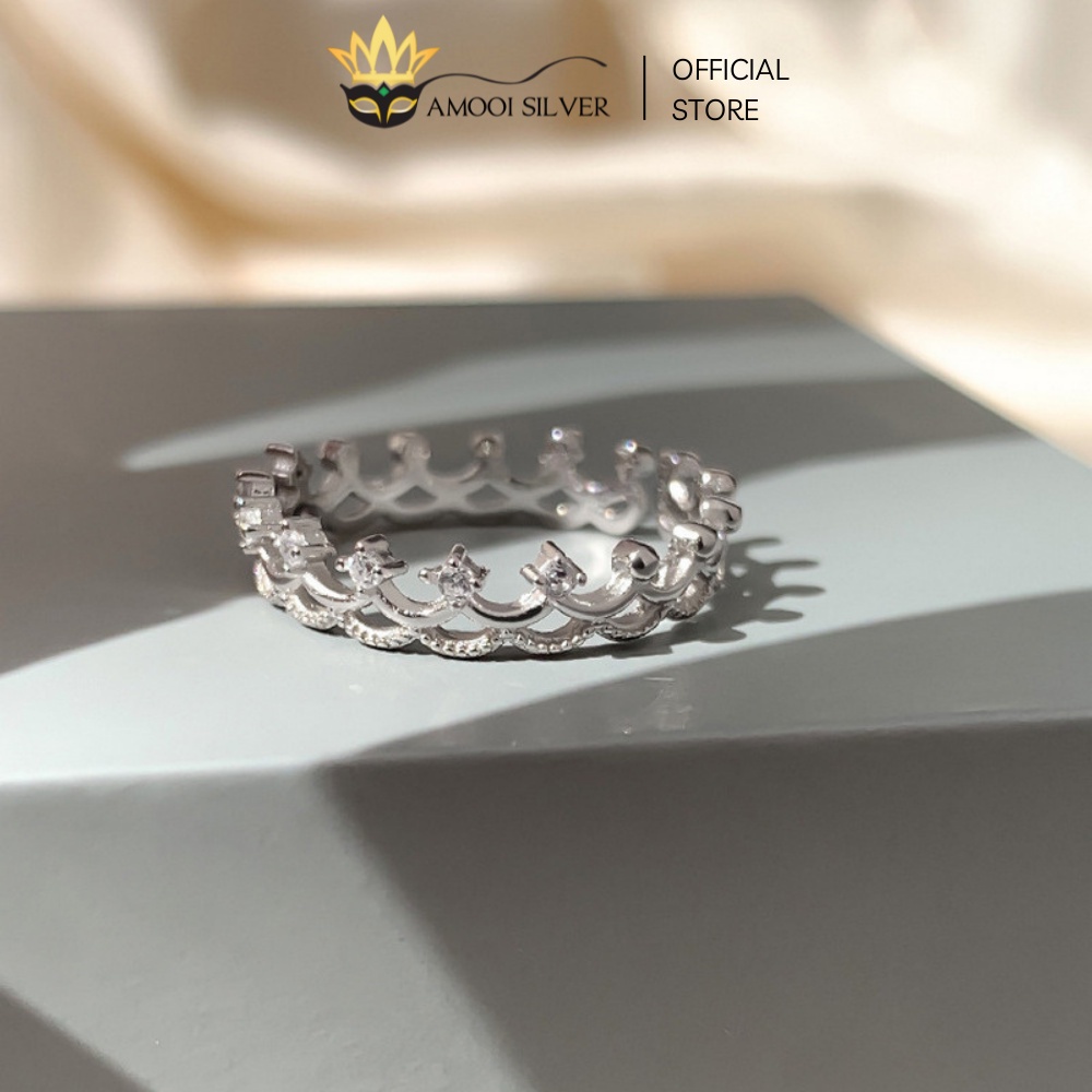 ✅ THÔNG TIN SẢN PHẨM: Nhẫn Bạc Cao Cấp S925 Freesize Mẫu Vương Miện Đính Đá - Amooi Silver AN11