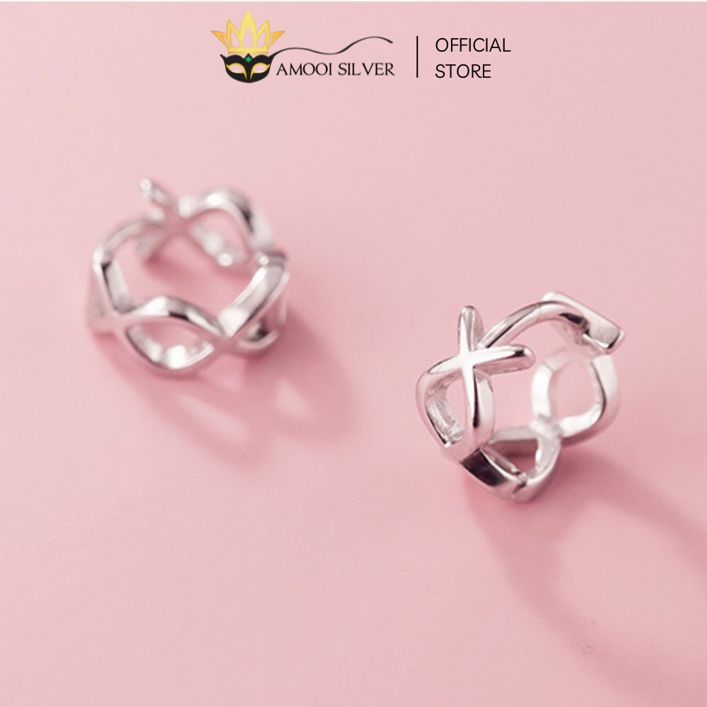 ✅ THÔNG TIN SẢN PHẨM: Bông Tai Bạc S925 Khoen Tròn Chữ X Đường Kính 8mm - Amooi Silver AB111