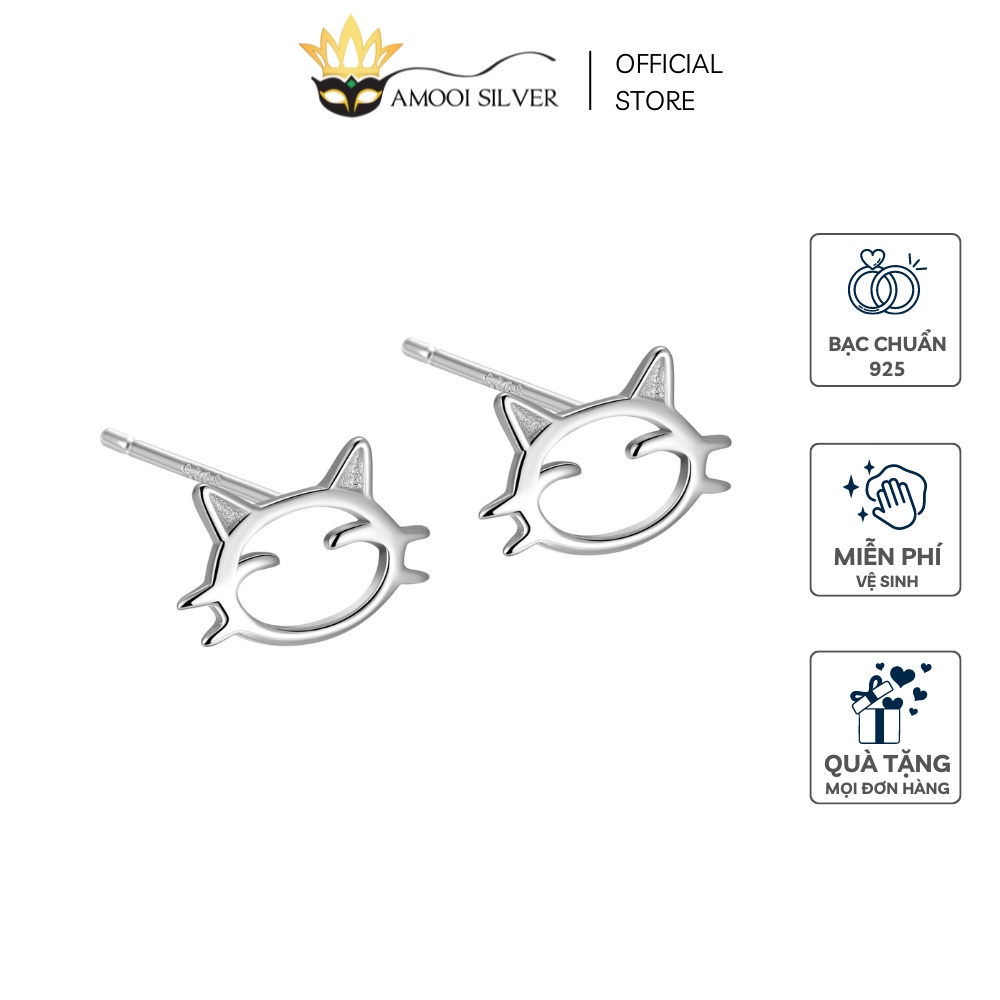 ✅ THÔNG TIN SẢN PHẨM: Bông Tai Bạc Cao Cấp S925 Hình Mặt Mèo Ngộ Nghĩnh - Amooi Silver AB172