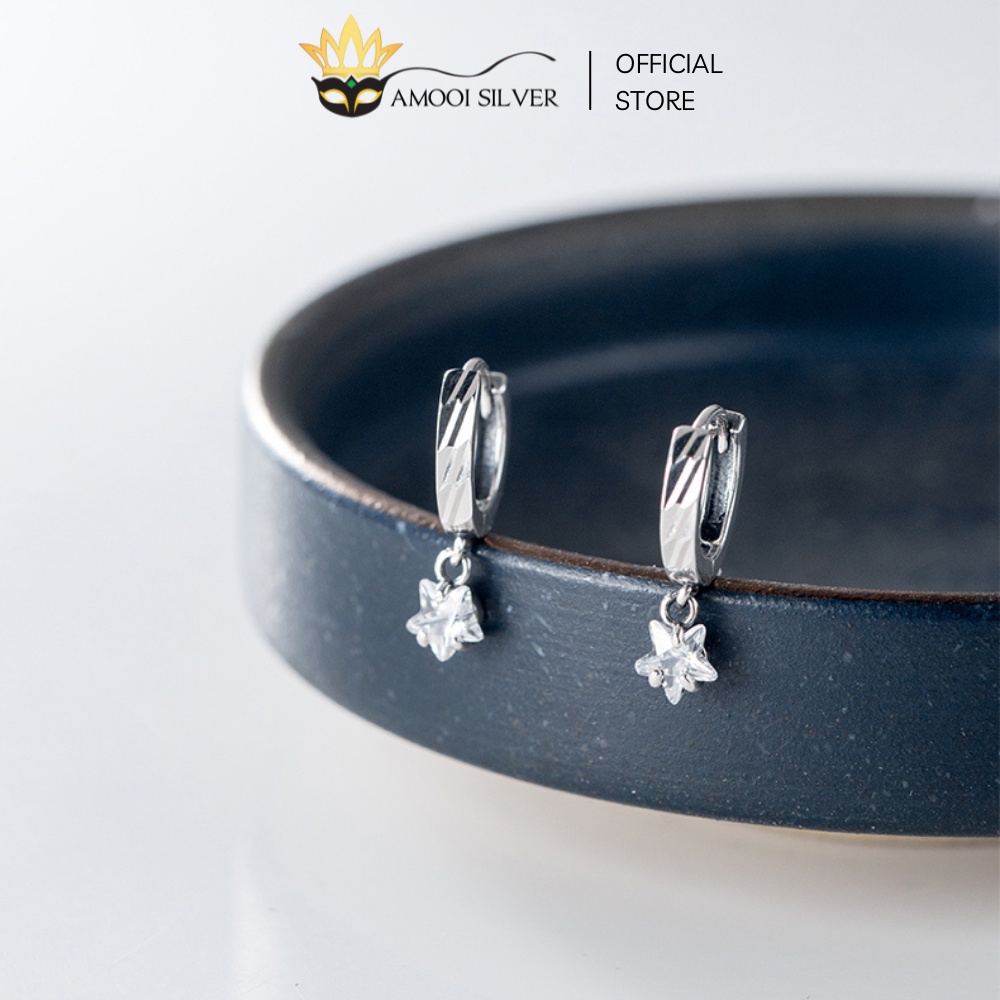 ✅ THÔNG TIN SẢN PHẨM: Bông Tai Bạc S925 Khoen Tròn Mẫu Ngôi Sao Móc Đường Kính 8mm - Amooi Silver AB98