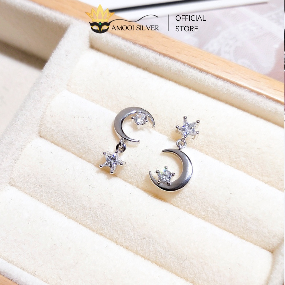 ✅ THÔNG TIN SẢN PHẨM: Bông Tai Bạc S925 Thiết Kế Hình Trăng Sao Bất Đối Xứng - Amooi Silver AB58