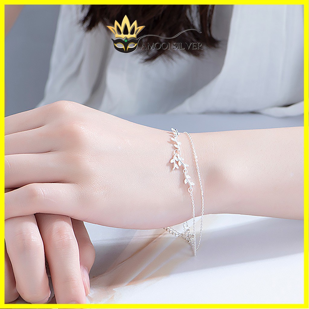 Giới thiệu Lắc tay bạc S925 dây đôi lá - Amooi Silver AT44