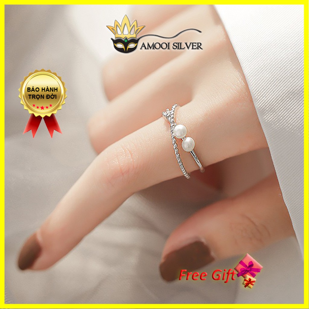Nhẫn bạc S925 chéo ngọc ngà - Amooi Silver AN85