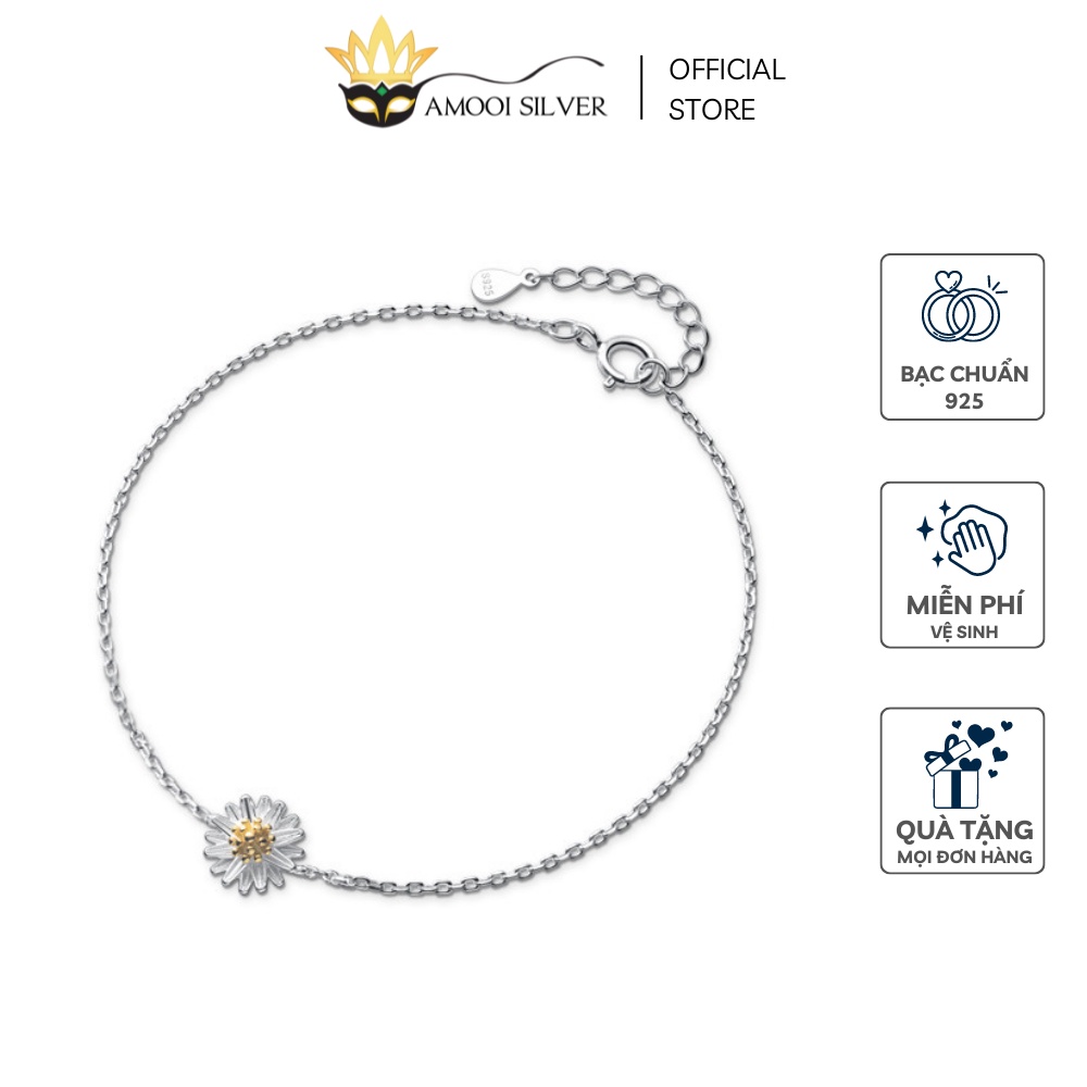 Giới thiệu Lắc Tay Bạc S925 Mặt Đá Hoa Cúc Họa Mi Nhụy Vàng Cao Cấp - Amooi Silver AT85
