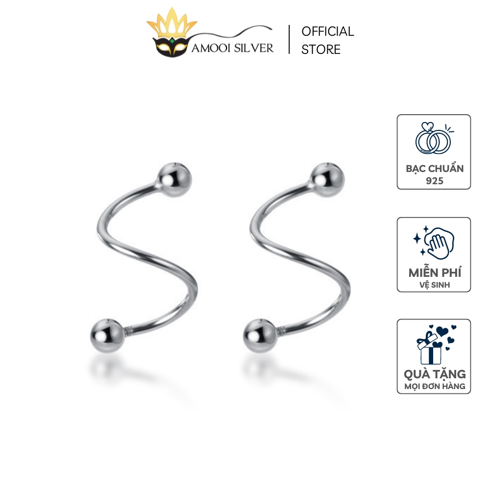 ✅ THÔNG TIN SẢN PHẨM: Bông Tai Bạc S925 Mẫu Khuyên Tai Unisex Bi Xoắn Chui Vặn - Amooi Silver AB134
