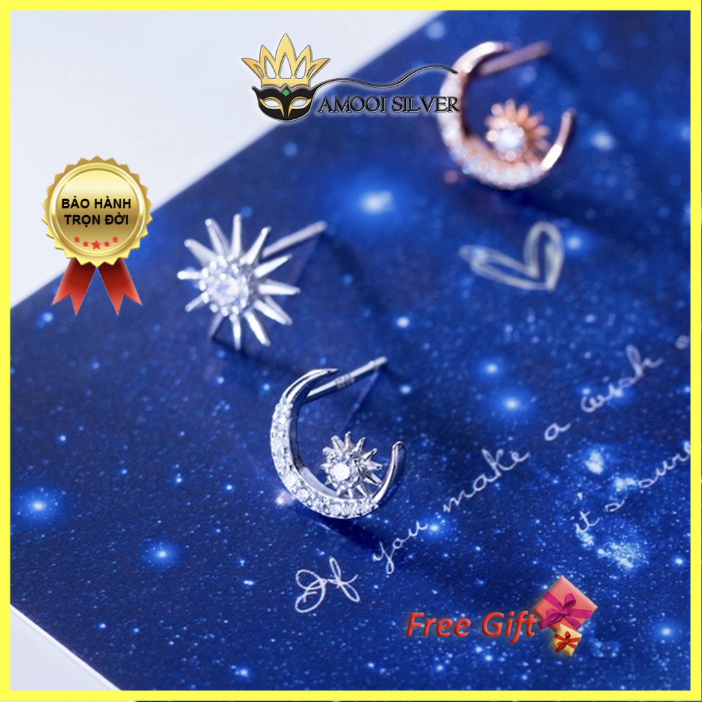 Bông tai bạc S925 sun moon - Amooi Silver AB10