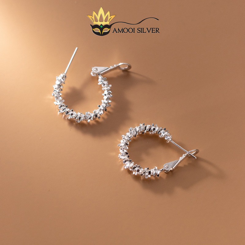 Bông tai bạc S925 khoen tròn sequin lấp lánh đường kính 1.8cm - Amooi Silver AB215