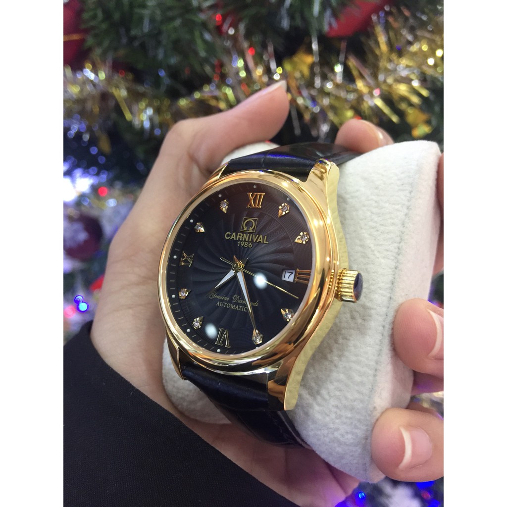 Thương hiệu: CARNIVAL Loại máy: Cơ tự động Kiểu dáng: Nam - Dây da chính hãng - Mặt kính: Sapphire (Chống trầy, xước) - Vỏ: Thép không gỉ 316L - Đường kính: 39mm - Độ chịu nước: 30M - Bảo hành toàn cầu: 2 Năm
