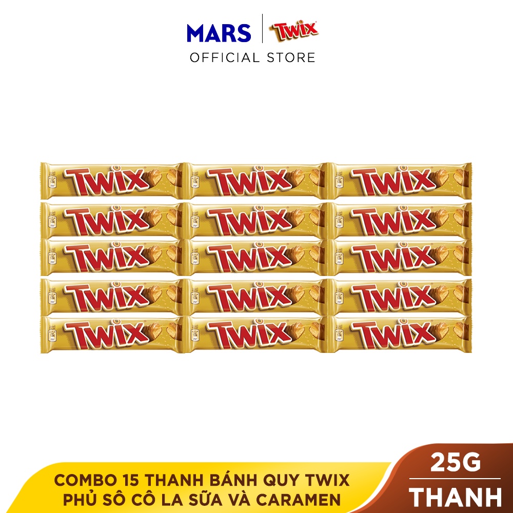 BỘ SẢN PHẨM BAO GỒM 15 x Thanh bánh quy Twix phủ Sô cô la Sữa và Caramen 25g
