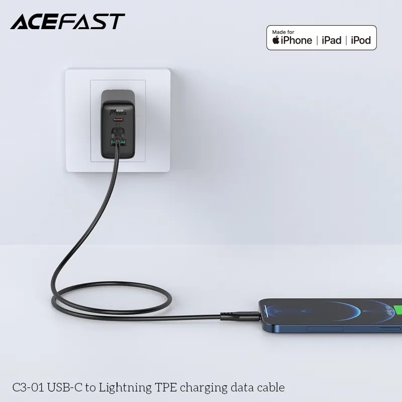 Cáp ACEFAST C3-01 Type C to Light.nin.g, dòng điện lên đến 3A, chiều dài 1.2m, chất liệu TPE, chứng nhận M.F.I ⚡Cáp chuẩn M.F.I - Đầu cáp được gia cố chắc chắn