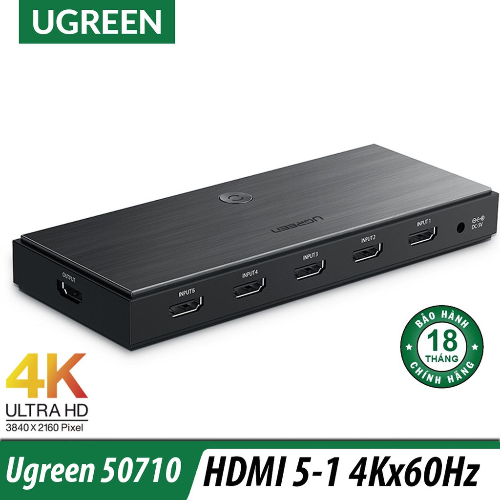 Thiết Bị Điện Tử > Loa > Dây cáp, bộ chuyển đổi âm thanh & video > [Mã ELMS9 giảm 6% đơn 300K] Bộ gộp HDMI 5 ra 1 Ugreen 50710 ( HDMI 2.0 3D 4K60Hz HDR, AUTO cổng,Remoste) CM189 Vỏ nhôm