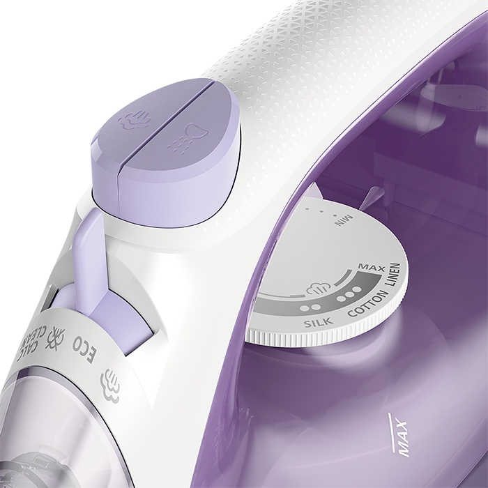 Điều khiển nhiệt độ dễ dàng Nút điều khiển nhiệt độ nâng cao và chế độ cài đặt hơi phun có thể thay đổi dễ vận hành và chính xác. Bạn sẽ luôn có được nhiệt độ và hơi phun phù hợp cho quần áo của bạn.