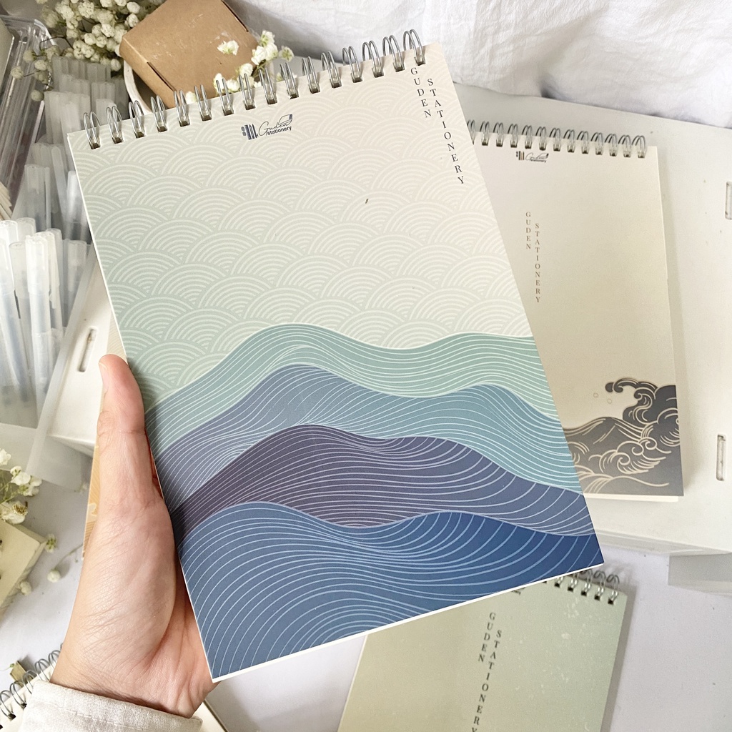 Tên sản phẩm: Sổ tay vẽ chì, sổ tay vẽ ký họa, Sketchbook A5 sóng Nhật Bản_Guden Stationery