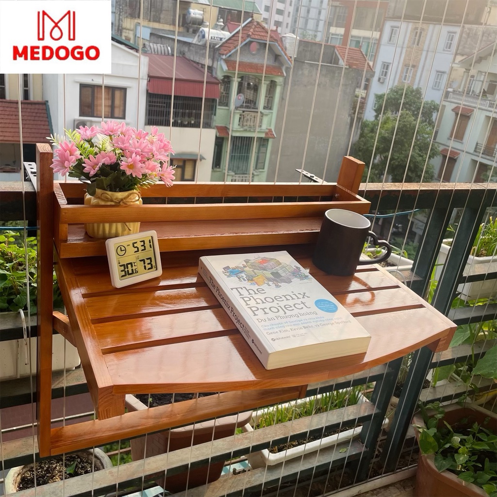 Giới thiệu Bàn gỗ MEDOGO treo ban công hình bán nguyệt, gấp gọn, cải tiến