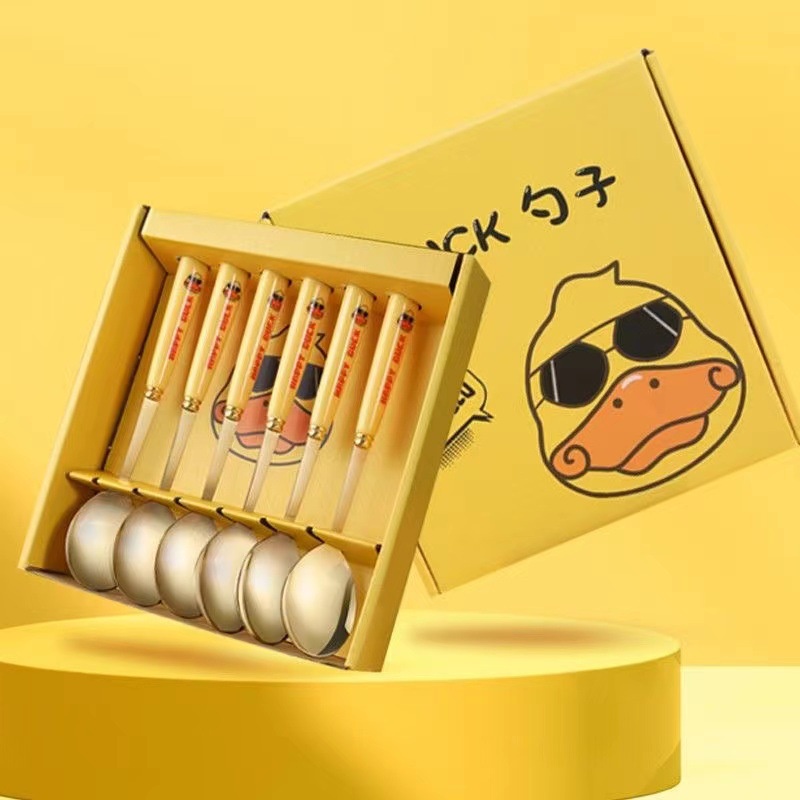 Giới thiệu Thìa Inox Hình Vịt Vàng 6 Muỗng Thép Không Gỉ Duck Starbucks