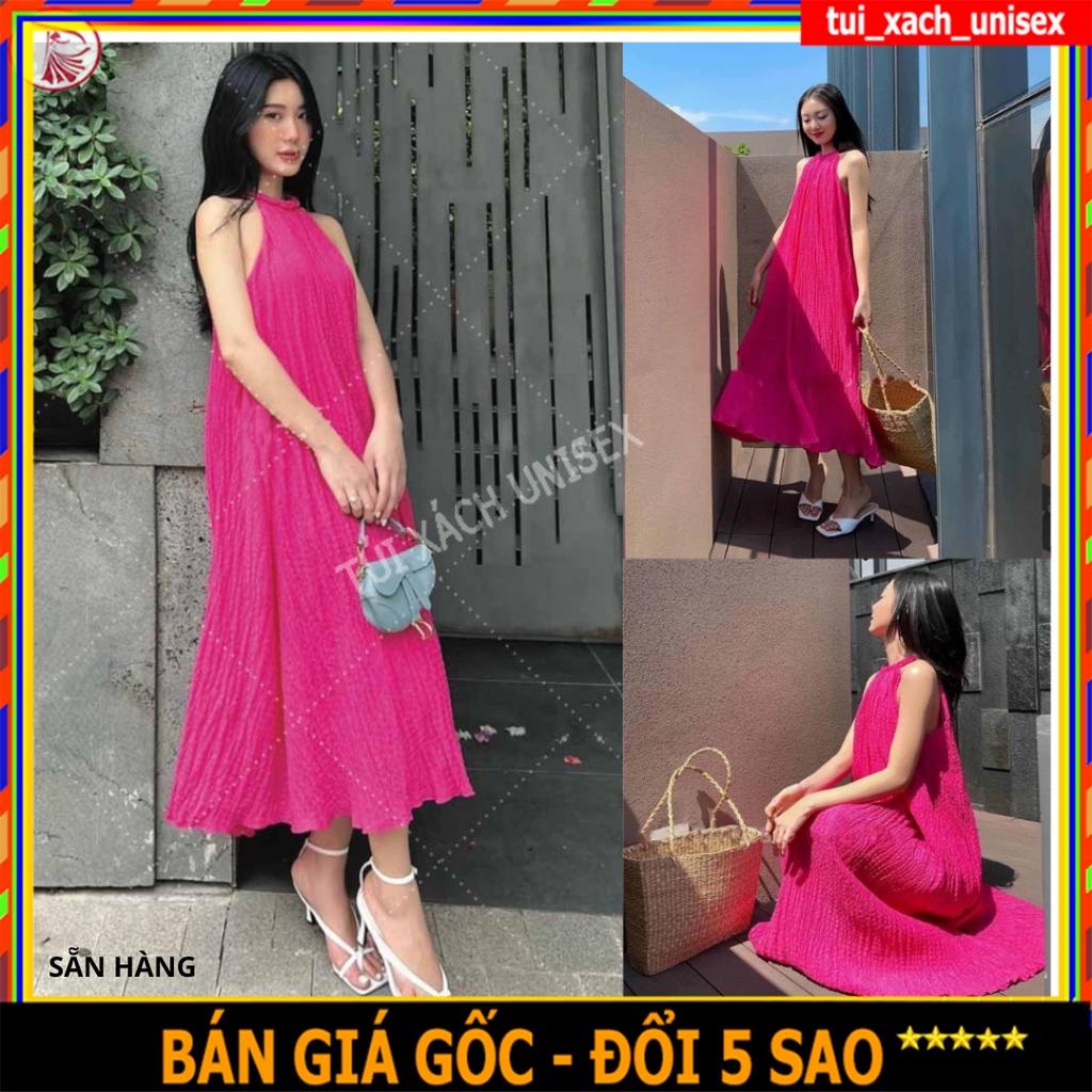 Giới thiệu Đầm maxi cổ yếm nữ Váy đi biển chất đũi xốp nhăn thoáng mát khóc cúc giot lệ