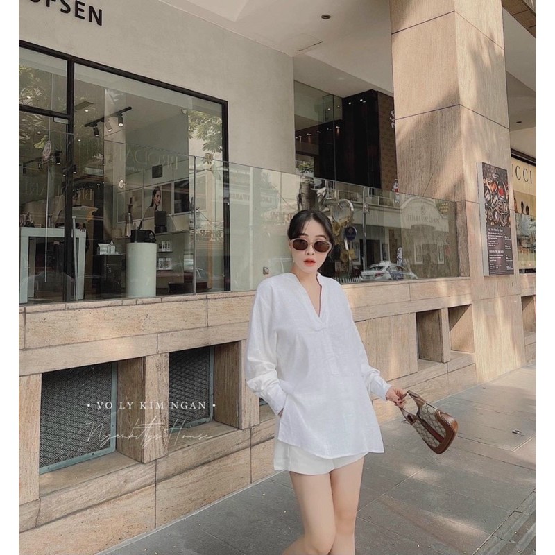 Giới thiệu [ MẶC ĐÔI NAM NỮ ] SET ÁO SƠ MI CỔ TÀU VẠT LƯNG + QUẦN SOOC